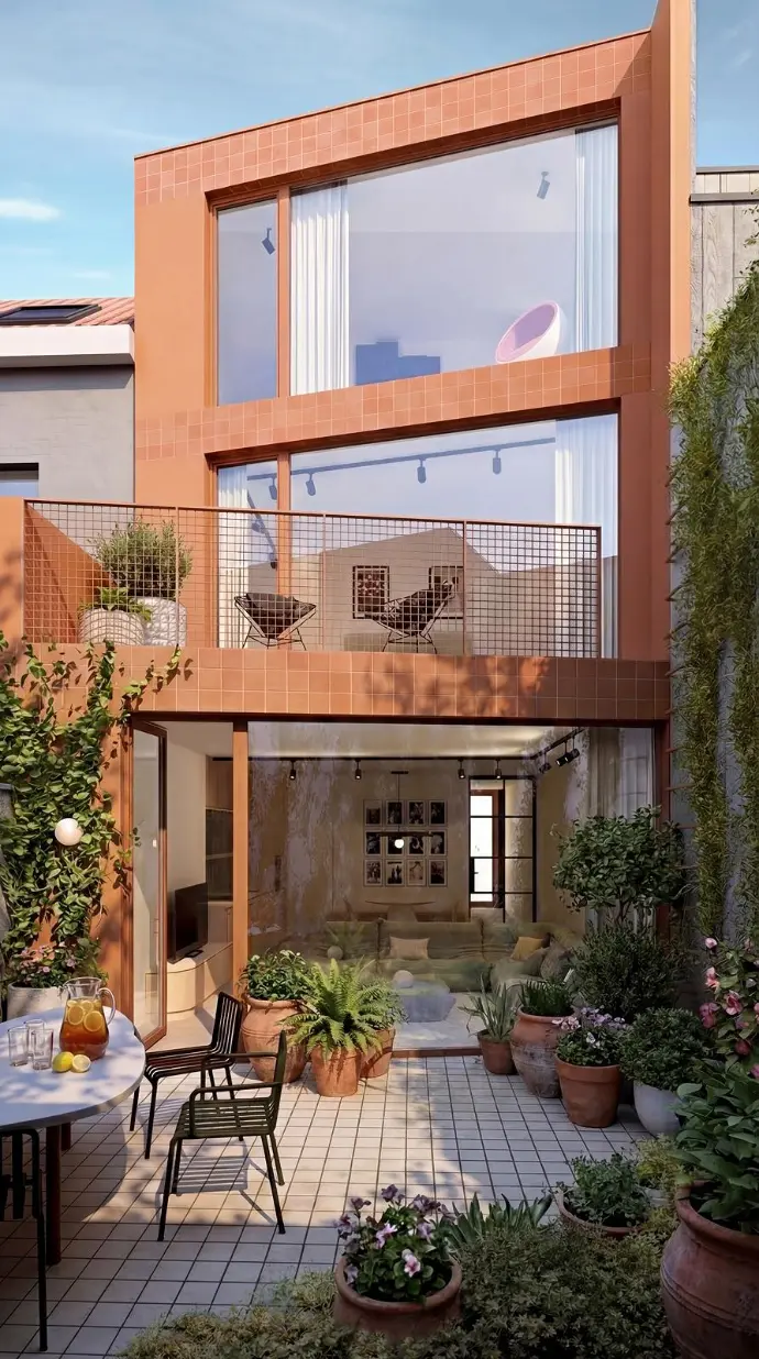 Waar de voorzijde van deze inschuifwoning zich bewust inpast in het stedelijke straatbeeld, opent de woning zich aan de achterzijde naar rust en leef kwaliteit. Achter de strakke gevel ontstaat een intieme stadstuin die fungeert als verlengstuk van de woning — een plek om te vertragen, te leven en tot rust te komen.